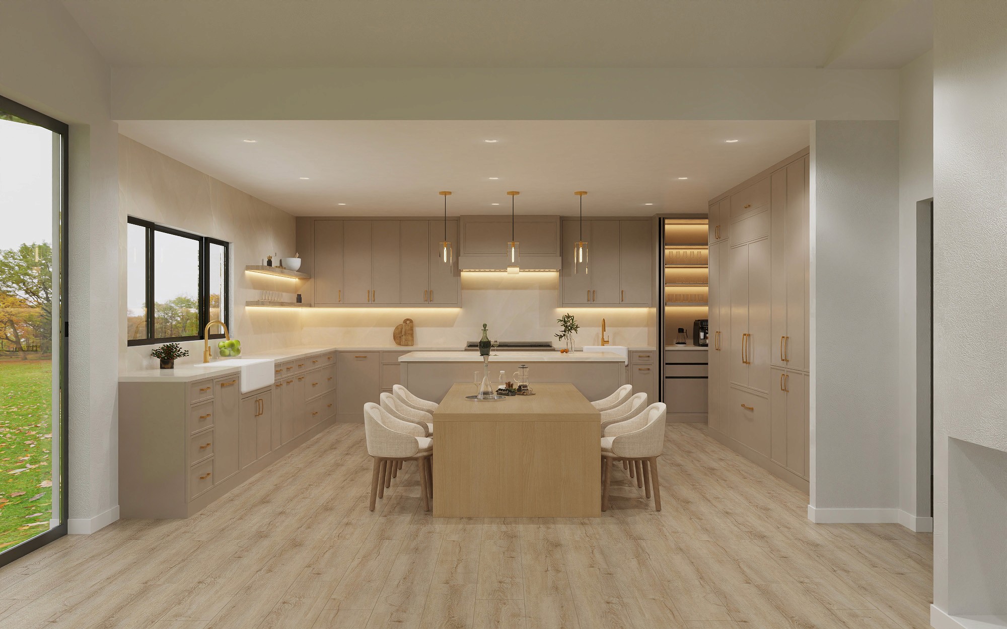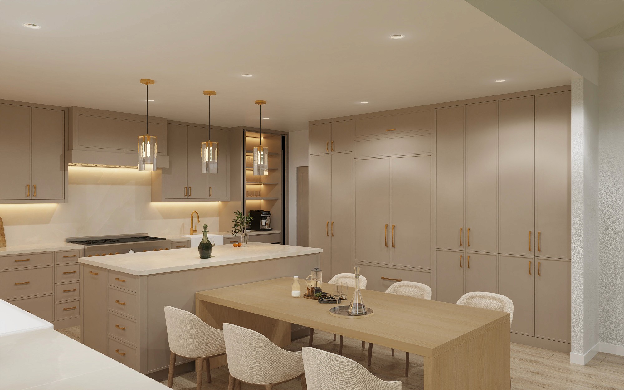 A modern kitchen with slim shaker cabinetry, white oak accents, and full-height stone surfaces was originally designed for my mother, who struggled to visualize the space from drawings alone. Creating renderings allowed her to finally see the design as it was intended, and watching her reaction when it all clicked was the moment I realized the power of visualization. That experience is what sparked the launch of my rendering studio with the goal of using imagery to replace uncertainty with clarity and excitement.